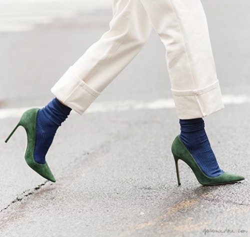 L’importante è che la scarpa lasci scoperta una parte del piede, per dare continuità alla gamba.